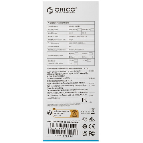 Концентратор ORICO PAPW3AT-C3-015-PK-EP — это идеальное решение для подключения нескольких устройств к компьютеру. Он изготовлены из прочного ABS пластика, что обеспечивает долгий срок службы и защиту от повреждений. Концентратор имеет компактный размер 98х34х12,6 мм и длину кабеля 0,15 метра, что позволяет легко разместить их на рабочем столе.