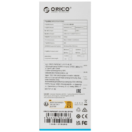 3-портовый концентратор ORICO-PAPW3AT-U3-015-BL-EP — это устройство, которое обеспечивает высокую скорость передачи данных и совместимость с различными операционными системами. Он выполнен из прочного ABS пластика, что делает его надежным и долговечным.