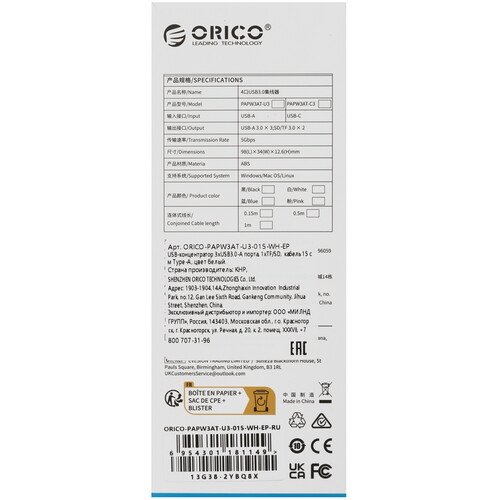 3-портовый концентратор ORICO PAPW3AT-U3-015-WH-EP — это устройство, которое обеспечивает высокую скорость передачи данных и совместимость с различными операционными системами. Он выполнен из прочного ABS пластика, что делает его надежным и долговечным.