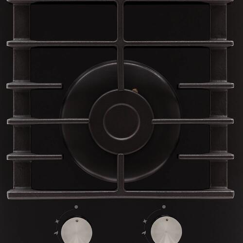 конфорок - 2 шт, решетки - чугун, панель - закаленное стекло, электроподжиг, газ-контроль, черный