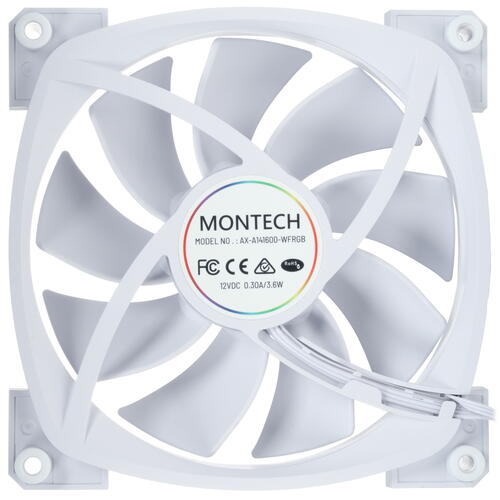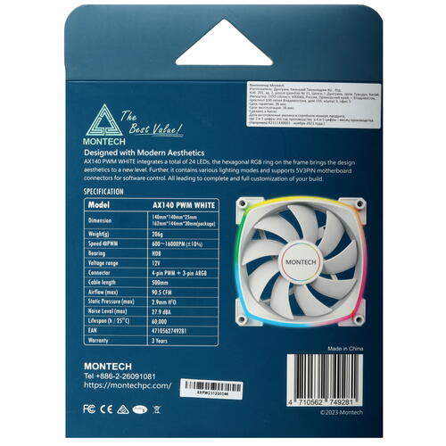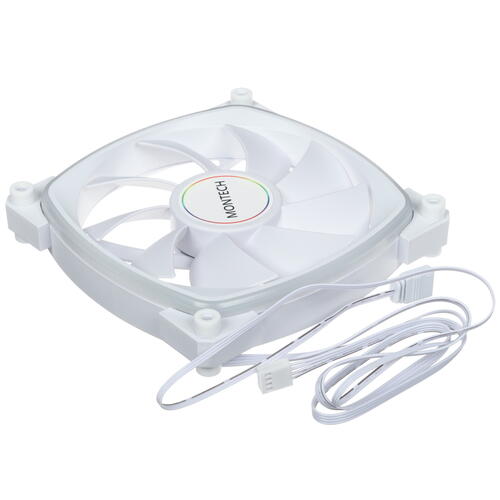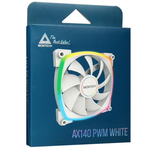 Вентилятор Montech AX 140 PWM в белом исполнении обладает размерами 140 x 140 мм. Он распределяет воздух так, что способствует снижению температурных показателей компонентов системы и улучшению общей производительности. Поддержка технологии PWM позволяет настраивать скорость вращения в зависимости от текущей нагрузки, а диапазон скорости от 600 до 1600 об/мин предоставляет гибкие возможности охлаждения. С максимальным уровнем шума всего 27.9 дБ, вентилятор работает без лишних звуков. Антивибрационная прокладка снижает передачу вибраций на корпус, что уменьшает уровень шума и улучшает стабильность функционирования устройства. ARGB-подсветка вентилятора Montech AX 140 PWM позволяет синхронизировать его с другими компонентами системы и создавать визуальные решения для компьютера.