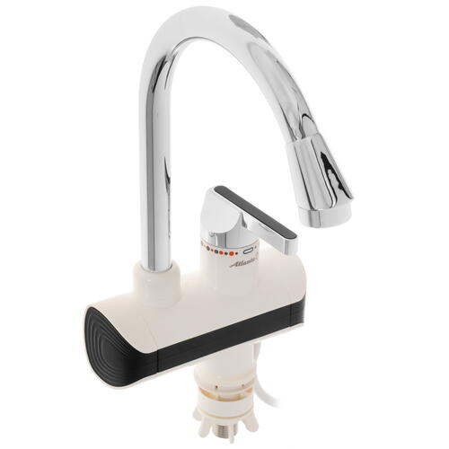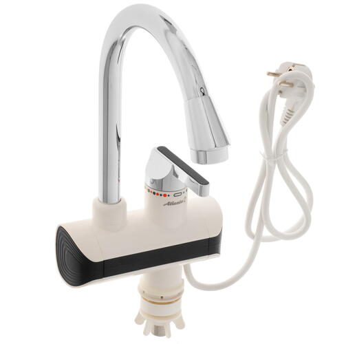 Водонагреватель электрический Atlanta ATH-7432 монтируется на раковину с нижней подводкой коммуникаций. Проточный прибор оснащен простым поворотным механизмом. Мощность модели позволяет получать 3 л горячей воды в минуту. Вы можете выбирать температуру нагрева от 30 °C до 65 °C.