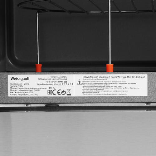 Встраиваемая микроволновая печь Weissgauff HMT-255 серебристый