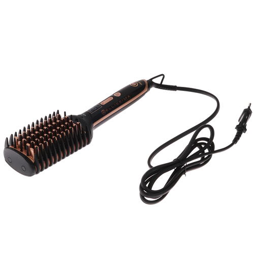 На удобной рукоятке термощетки Bellissima 11539 располагаются кнопки включения и регулировки режимов, а также дисплей. Все это помогает точно и быстро выставить нужный уровень нагрева рабочей поверхности. Диапазон температур составляет 160-210°С. У щетки предусмотрено керамическое покрытие щетинок, что значительно облегчает ее скольжение по волосам. Кроме того, оно защищает волосы от пересушивания, и даже при частых укладках волосы выглядят блестящими и гладкими. Сетевой шнур термощетки имеет вращающееся основание, за счет чего ей удобно маневрировать в процессе укладки.