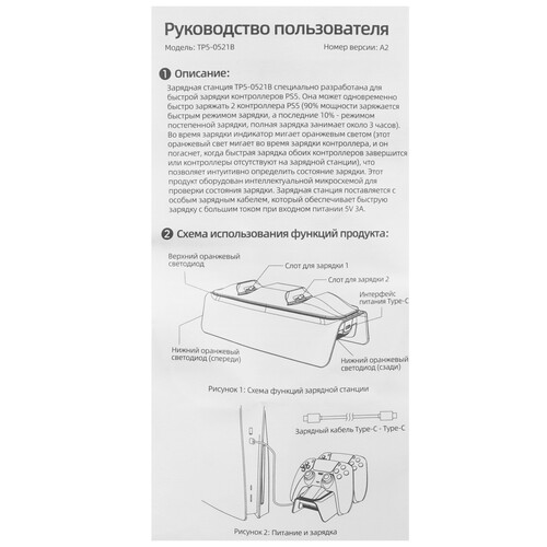 Зарядная станция DOBE TP5-0521B предназначена для геймпадов приставки PlayStation DualSense. ЗУ оснащено LED-индикатором заряда, разъемом USB Type-C и съемным кабелем. Станция позволяет одновременно заряжать 2 геймпада.