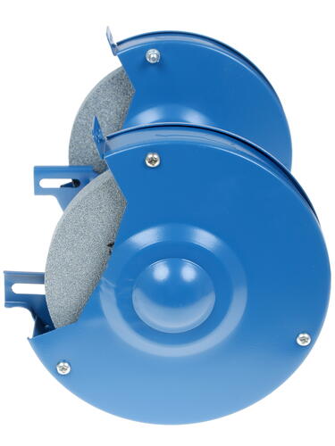 Около шлифовальных дисков расположен защитный кожух. Он оберегает руки оператора при работе на станке. Предоставляется небольшая зона, в которой диски выходят наружу и на них можно проводить заточку.