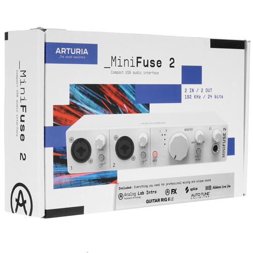 Устройство Arturia MiniFuse 2 оснащено инструментальным входом, цифровыми разъемами MIDI, двумя аналоговыми входами XLR/jack combo и тремя выходами jack 6.35 mm (TRS). Звуковая карта совместима с ОС macOS и Windows, дополнена удобным регулятором громкости. Устройство оснащено фантомным питанием микрофона и встроенным усилителем для наушников.